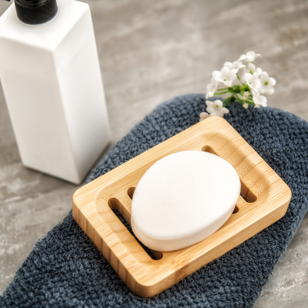 Jabonera de Bambo para darle un toque especial al baño y mantenerlo organizado con artículo en su lugar.